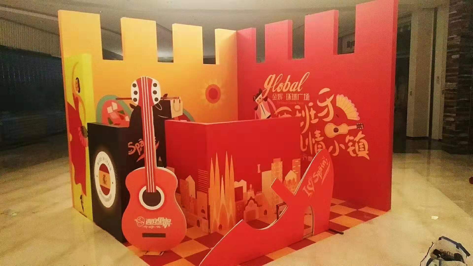 此次美陳設(shè)計和搭建主要針對的是西班牙風(fēng)情小鎮(zhèn)的相關(guān)元素進(jìn)行設(shè)計考慮的,首先肯定要考慮西班牙小鎮(zhèn)的一些細(xì)節(jié),比如穿著西班牙長裙的美麗姑娘,一把木吉他,一雙高跟鞋等等!都是比較突出典型的元素特色!