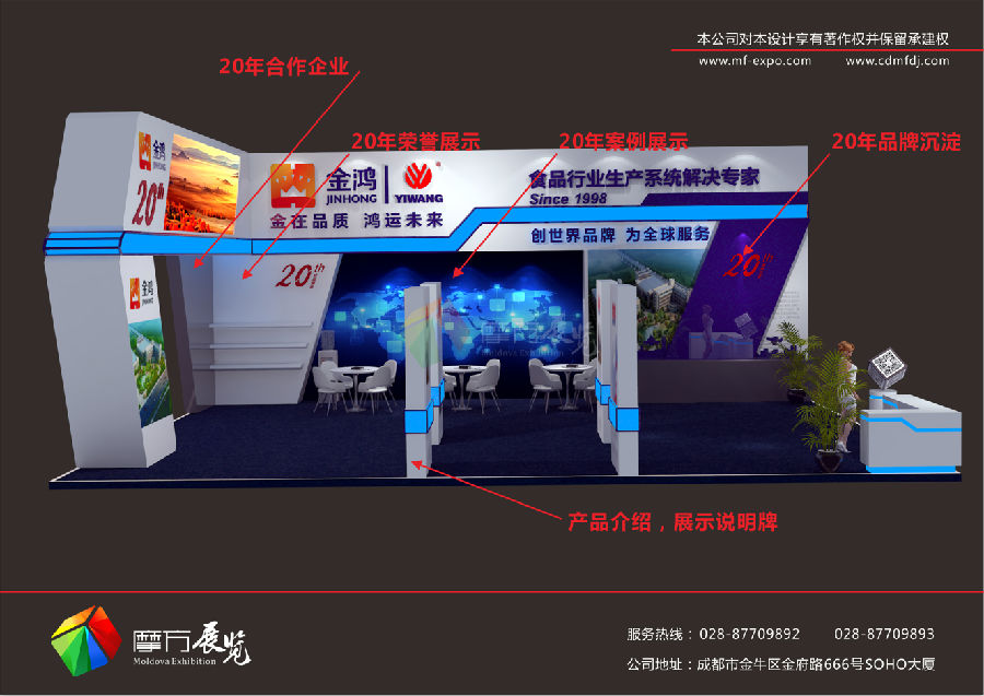 成都展覽公司成都摩方展覽展示有限公司是專業(yè)的會展搭建公司,公司是集會展展臺設(shè)計,展臺制作及會展展臺搭建以一條龍服務(wù)的專業(yè)服務(wù)商,承接成都,西南及全國各大中小展會的會展布置及設(shè)計制作。