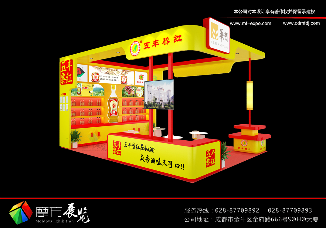 五豐黎紅2018秋季糖酒會展臺設計方案由成都摩方展覽展示有限公司進行設計制作