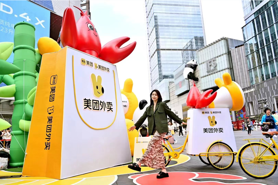 春熙路美團外賣打造的龍蝦季時尚美陳,更吸引了大量的人流駐足拍照,美女帥哥些打卡留念等等!對于人流本來就是成都數(shù)一數(shù)二的商業(yè)區(qū),這一波宣傳無疑達到了意想不到的效果!